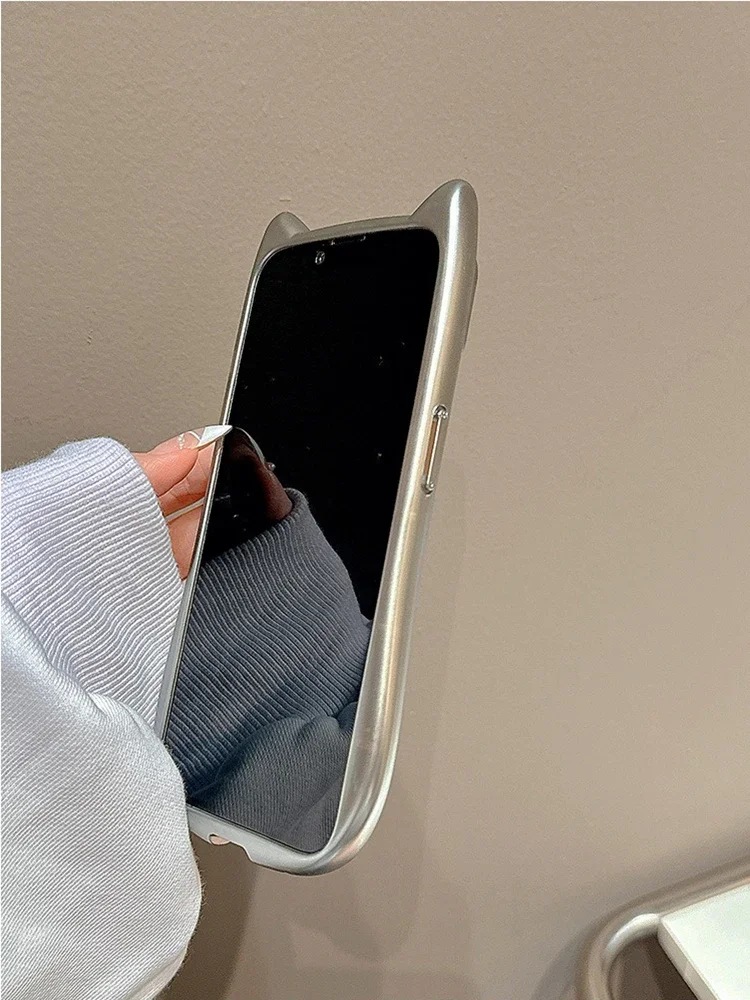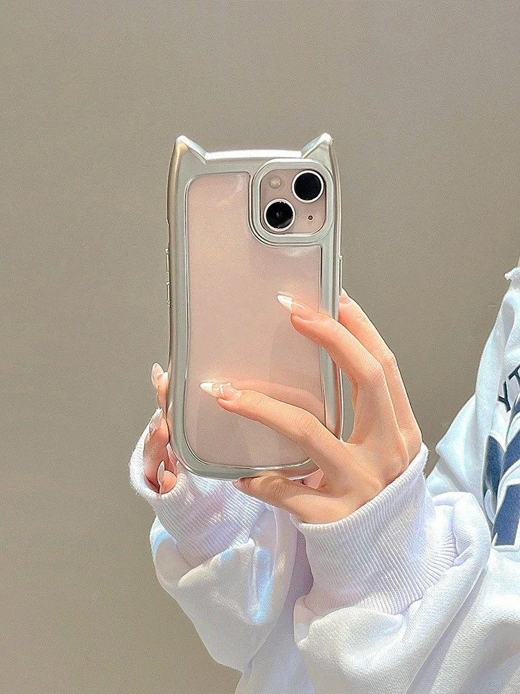 Cartoon Cute 3D Cat Ears Plating Silver Transparent Phone Cover For iPhone 15 14 13 12 Pro Max Case