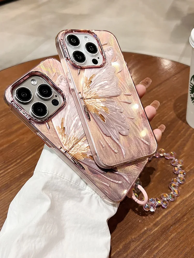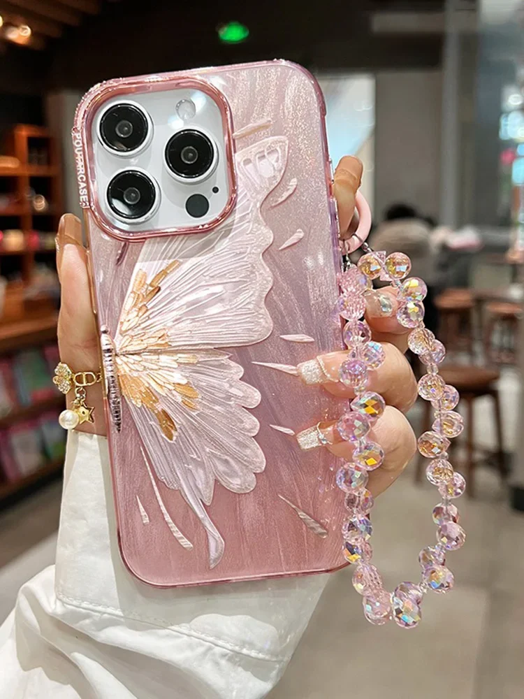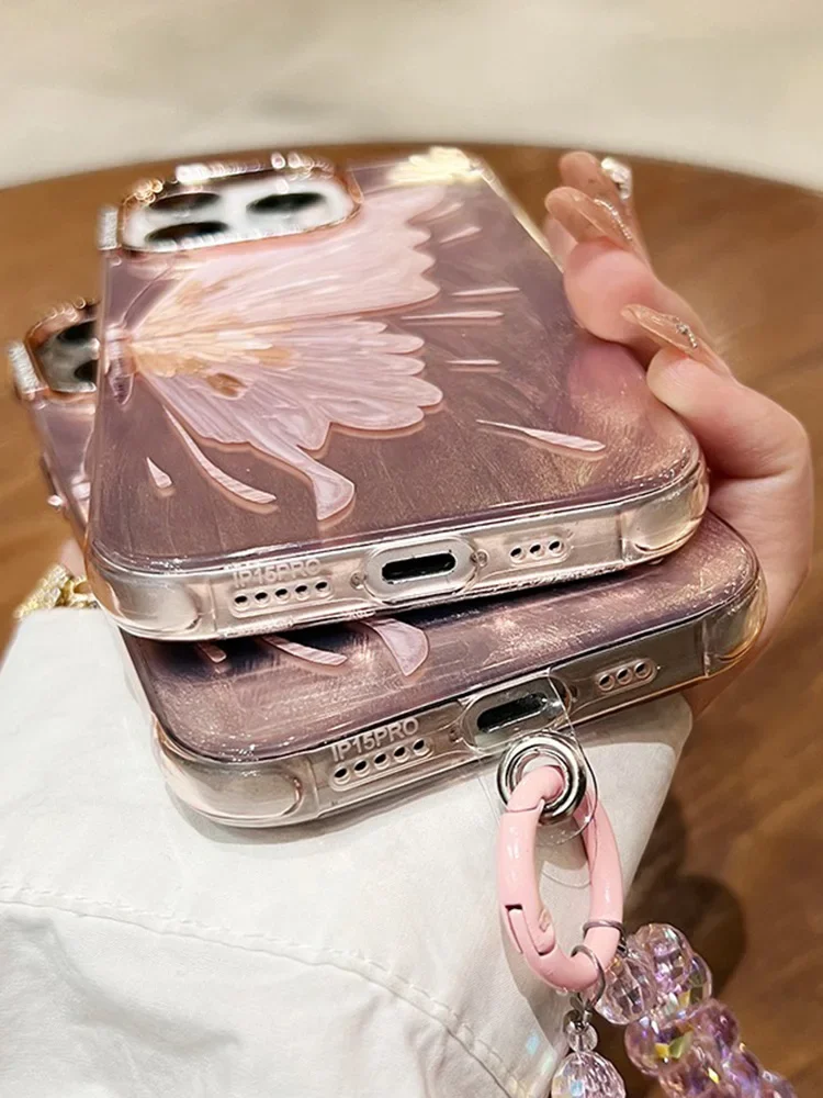 Luxury Bracelet Chain Case For iPhone 15 14 13 11 12 Pro Max 14 15 Plus Glitter Shinny Butterfly Soft Silicone Shockproof Cover